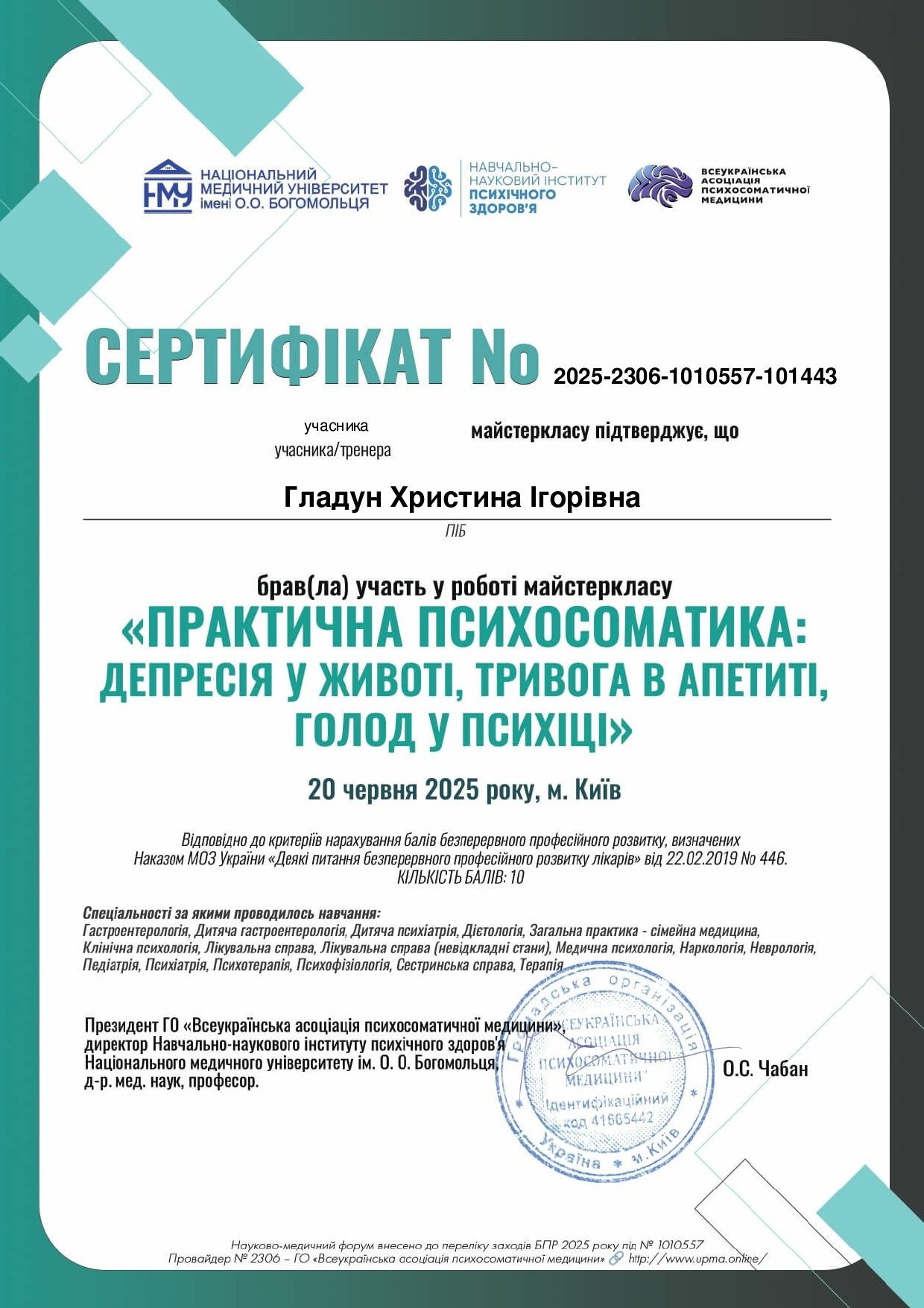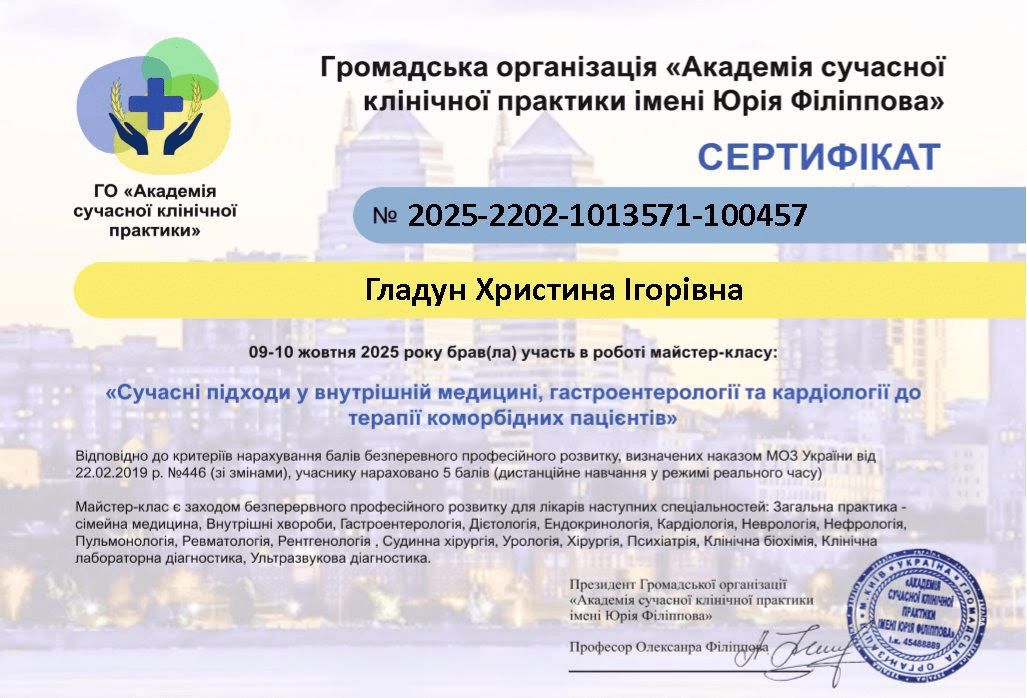 2025 г. - врач «Общей практики - семейная медицина», врач-эндокринолог в Medical Plaza Львов.