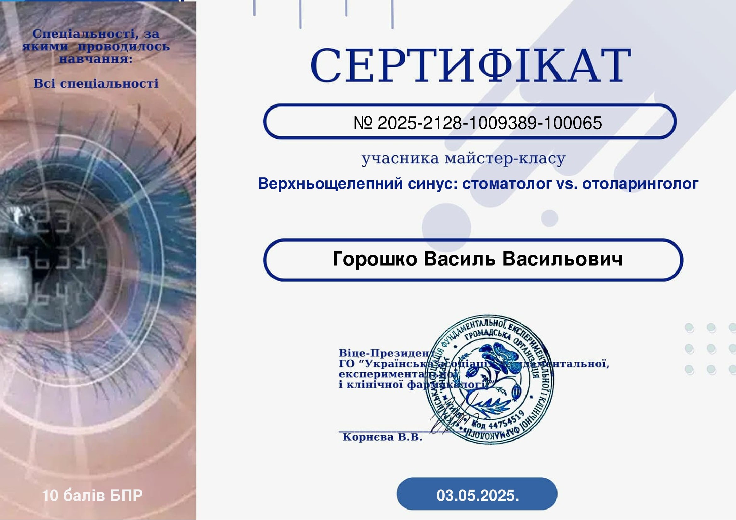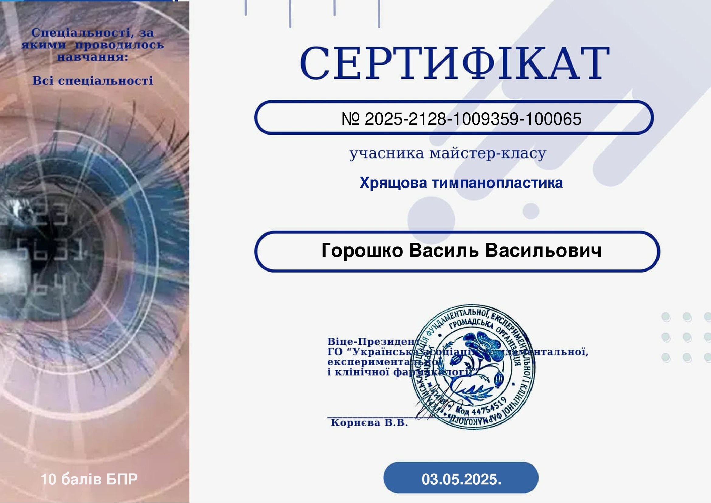 - Интернатура по специальности отоларингология – 2021-2023 гг. ТУ Специализация Детская Отоларингология 2024 г.