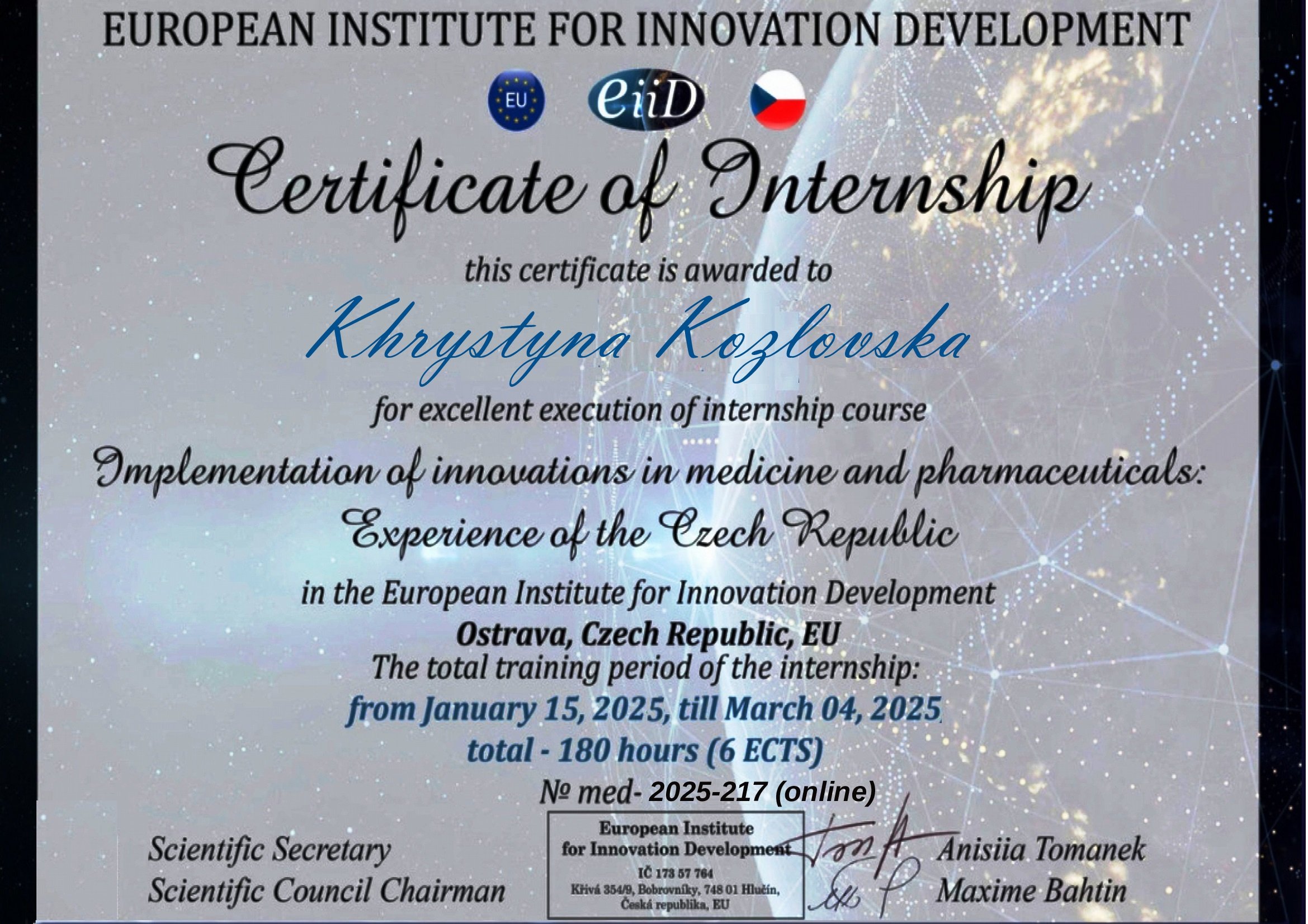 Высшая категория. Кандидат медицинских наук. Член ассоциации Львовского эндокринологического общества. Является автором многочисленных научных работ (32 статьи).