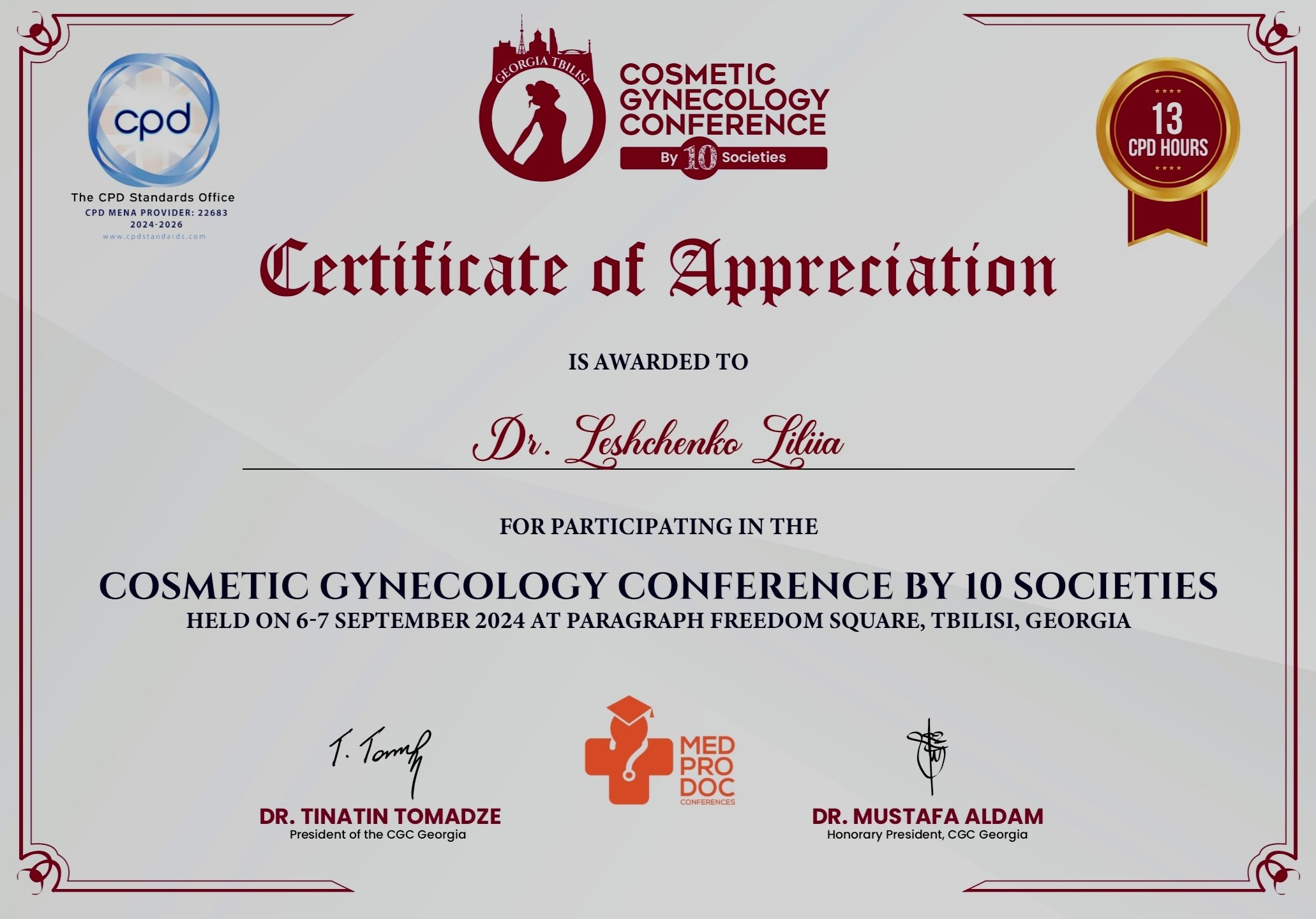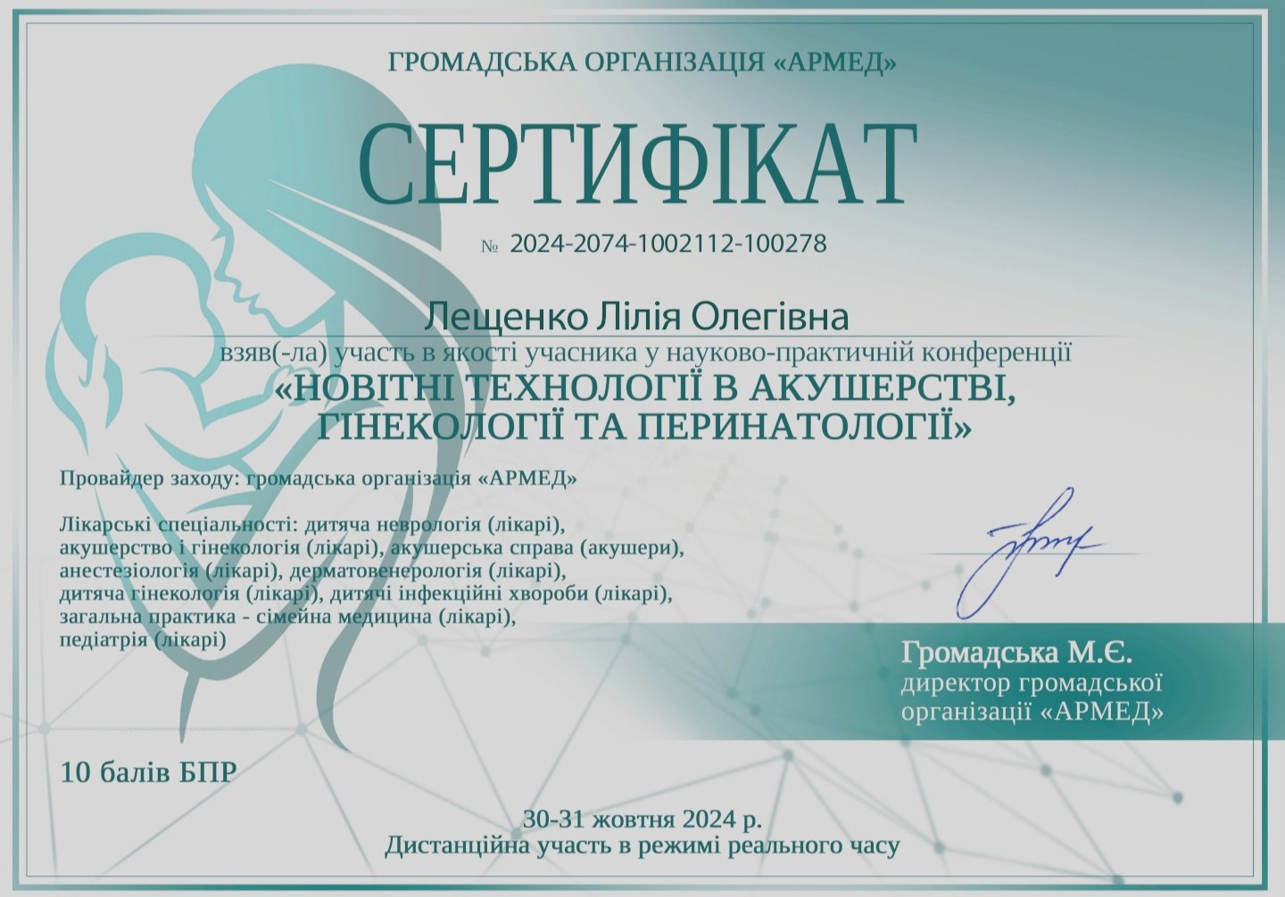 конференциях, тренингах, симпозиумах, мастер-классах по акушерству, гинекологии и перинатологии.