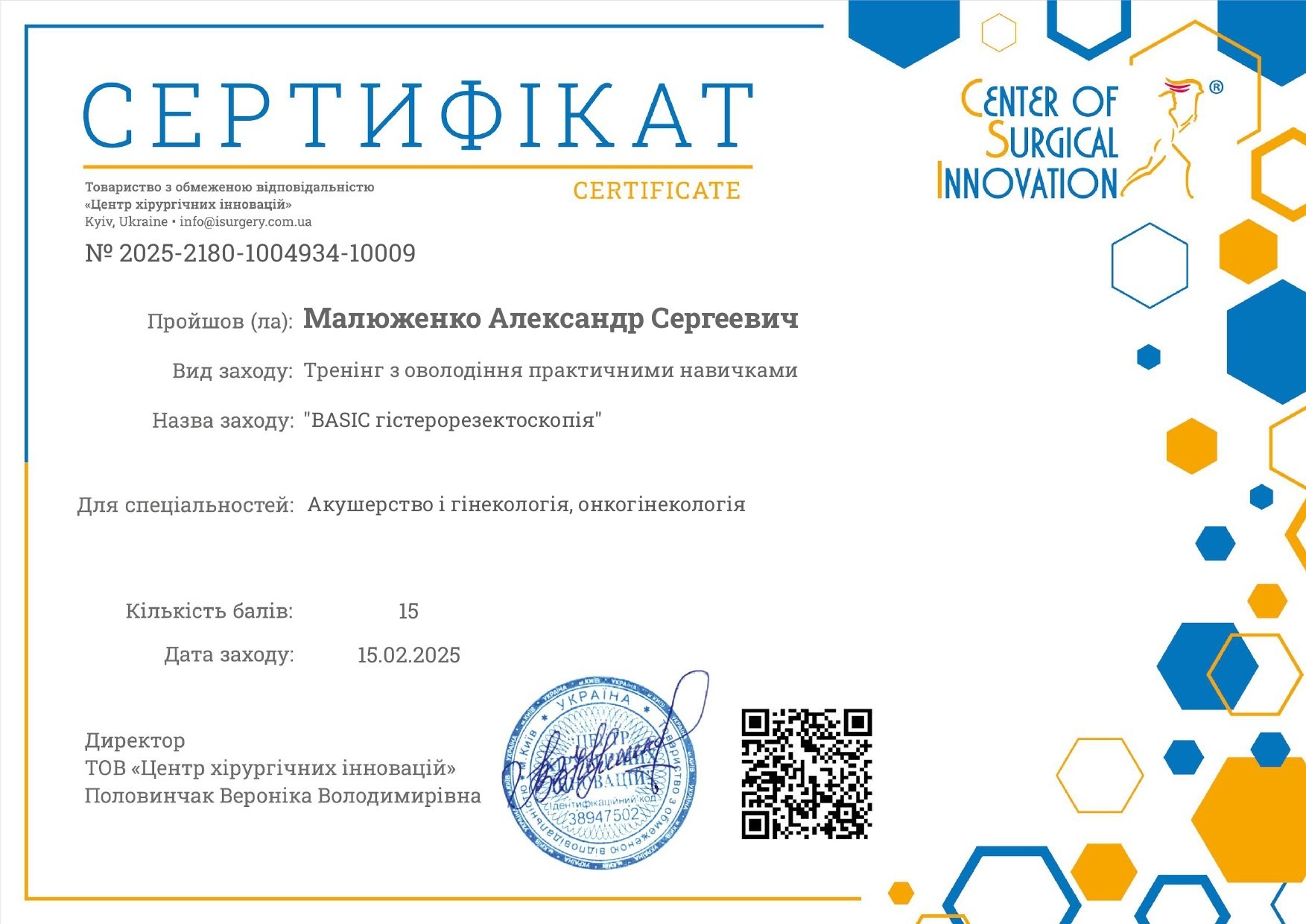 2007г - 2010г - обучение в интернатуре в Харьковской медицинской академии последипломного образования.